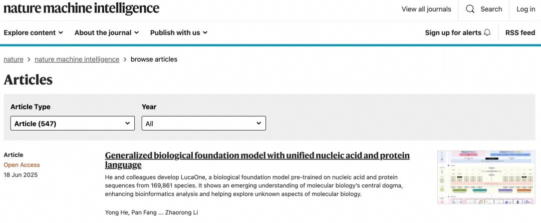 19日,阿里云AI for Science研究成果生物大基础大模型LucaOne登上国际顶级期刊《Nature Machine Intelligence》。